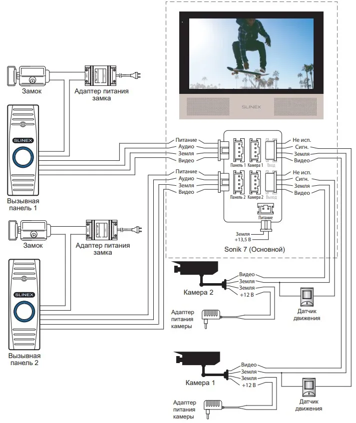Подключение вызывных панелей и камер к домофону Sonik 7