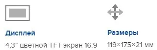 • Дисплей: 4,3” цветной TFT экран 16:9
