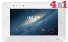 Монитор цветного видеодомофона 7 дюймов с емкостным сенсорным экраном с поддержкой форматов AHD/TVI/CVI 1080p/720p, CVBS (PAL), с возможностью отправки уведомлений о вызове в мобильное приложение vhOme 2.2, удаленный просмотр на смартфоне происходящего у вызывной панели, удаленное управление замками, подключенными к вызывным панелям. Возможность удаленного просмотра записей на microSD карте.