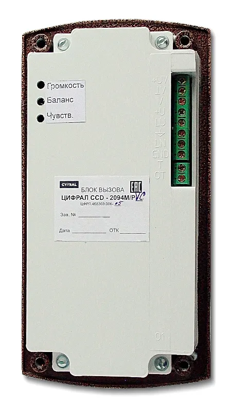 Блок Цифрал CCD-2094M/РVС имеет встроенную цветную видеокамеру и рассчитан на работу с видеомониторами 'Цифрал'.