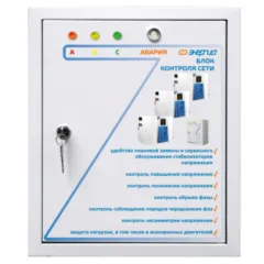 Блок контроля сети Энергия БКС 3х30 Е0101-0143 предназначен для автоматического контроля параметров и защиты от аварийных ситуаций, связанных с обрывом фаз, перекосом фаз, возникновением несимметрий, вызванных аномальным снижением или повышением уровня напряжения в электросети. Блок Энергия БКС 3х30 Е0101-0143 может использоваться в схеме со стабилизаторами напряжения, позволяя при работе в трехфазной сети объединить три однофазных стабилизатора для работы с трехфазными потребителями. Энергия БКС 3х30 Е0101-0143 обеспечивает: