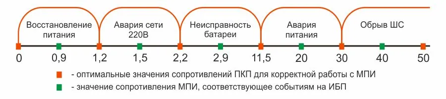 Для корректного отображения этих состояний на головном контроллере адресной системы необходимо программно задать интервалы сопротивлений программируемого технологического шлейфа ПКП, таким образом, чтобы перечисленные выше значения сопротивлений модуля не находились близко к порогу срабатывания