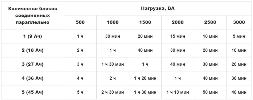 - Номинальная ёмкость каждой АКБ, Ач: 9