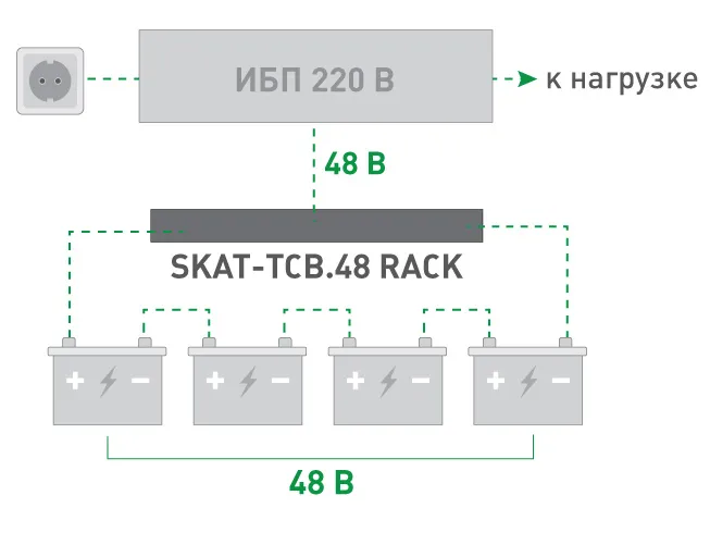 SKAT-TCB.48 RACK предназначено для продления срока службы АКБ в составе комплекса бесперебойного питания, а также для защиты АКБ от выхода из строя вследствие перезаряда в условиях высокой температуры эксплуатации.