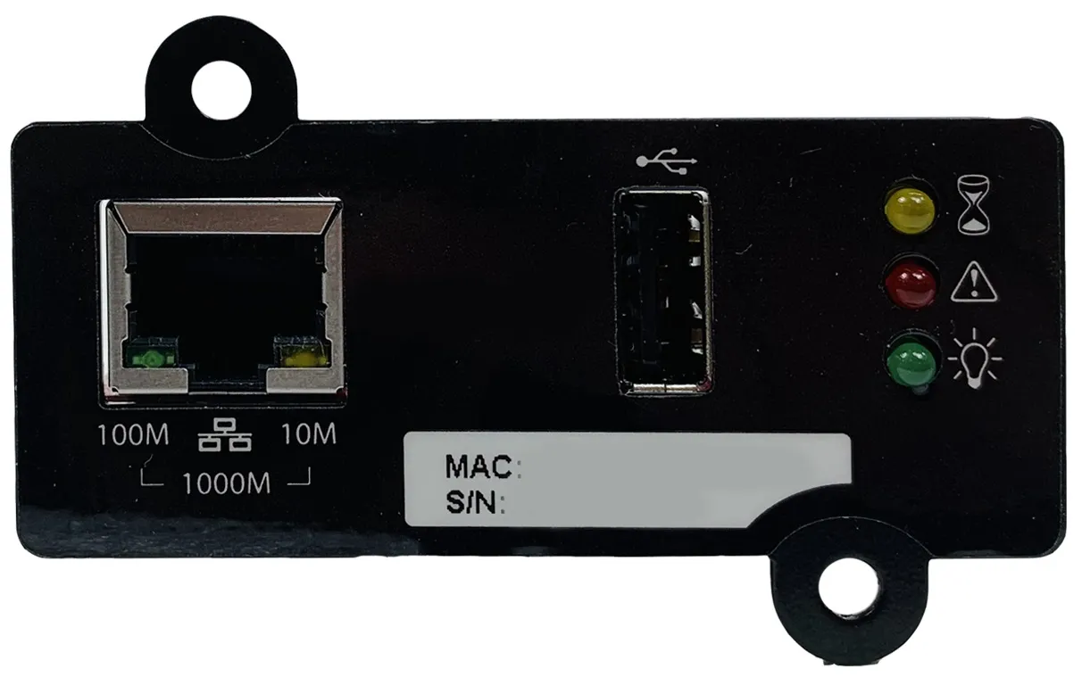 - Поддержка SNMP: Поддерживает HTTPS, SSL, SSH, SNMP v3.0, RFC1628 (ИБП MIB) и прочие расширенные функции. Совместим с IPv6