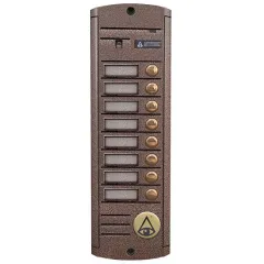 Activision AVP-458(PAL) (медь) - антивандальная 4-проводная вызывная панель цветного видеодомофона. Видеопанель идет в исполнении накладного типа, рассчитана на 8 абонентов. Для работы в составе 4-х проводного индивидуального видеодомофона, является его составной частью.