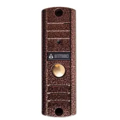 При необходимости панель AVP-508 (медь) можно оснастить защитным козырьком и угловым кронштейном, которые входят в комплект. Корпус вызывной панели выполнен из металла и имеет степень защиты IP54. Модель можно эксплуатировать в температурном диапазоне от -30 до +55C.