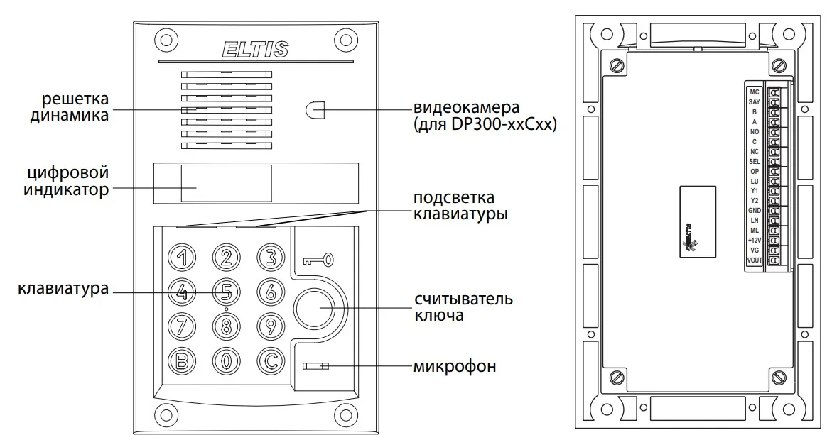 Блоки вызова серии DP300 предназначены для работы в составе до-мофонного комплекса ELTIS300 и обеспечивают санкционированный доступ в подъезды, на лестничные клетки и квартиры жилых домов или на иные объекты в соответствии с одним из признаков: