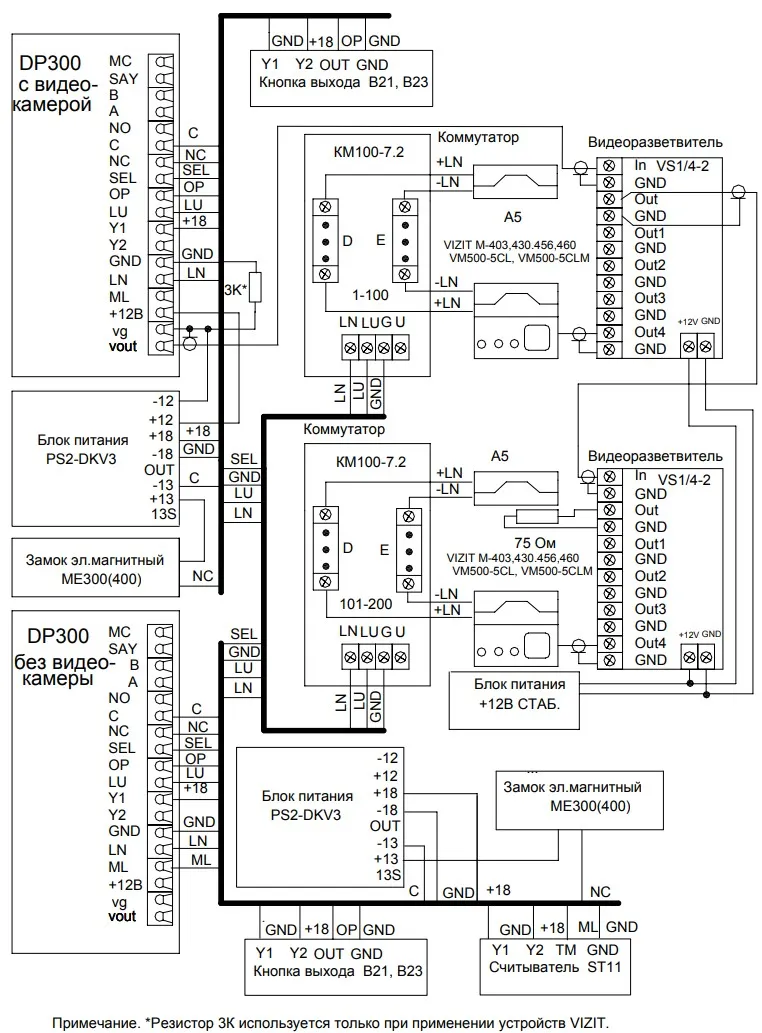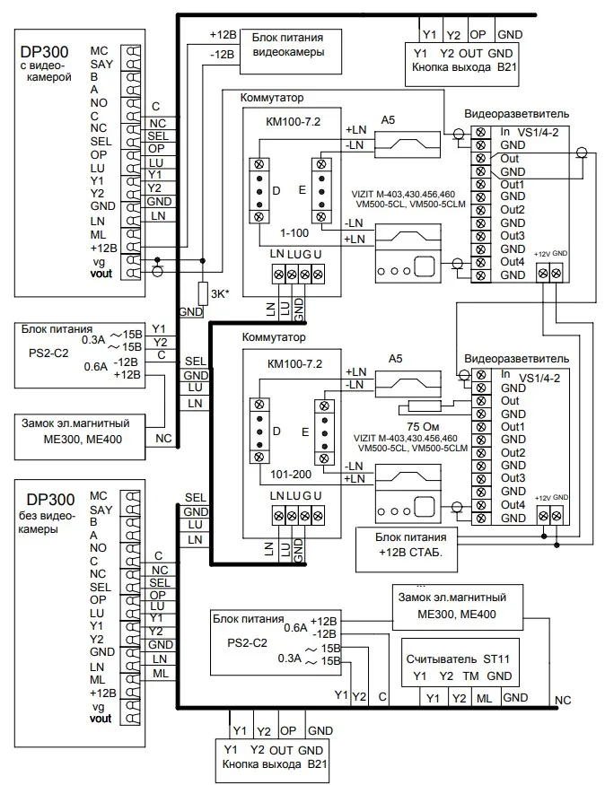 Схема подключения ELTIS DP300 c блоком питания PS2-DKV3