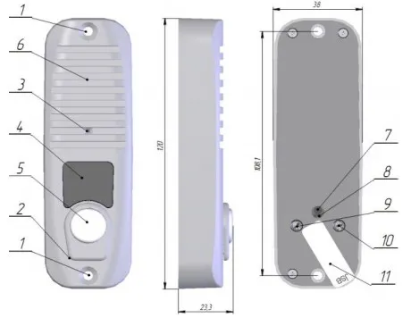Панель JSB-V055 предлагается в традиционном для вызывных панелей JSB антивандальном исполнении и с одним вариантом монтажа - накладным типом крепления. Дополнительно комплектуется кронштейном для установки изделия под углом 30° (т.н. 'уголком') и козырьком, обеспечивающим устройству дополнительную защиту от атмосферных осадков и препятствующим засветке солнечными лучами встроенного видеомодуля.