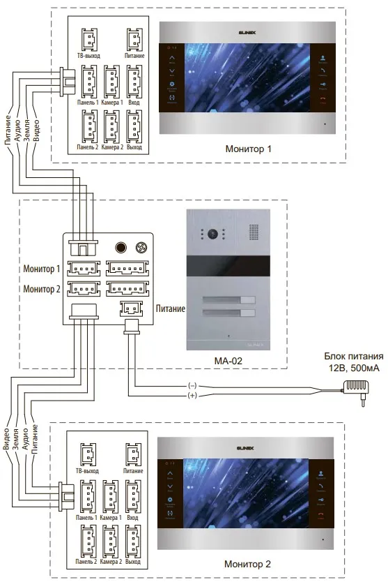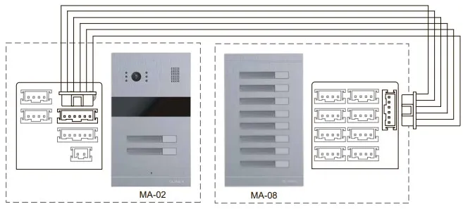 MA-08 может использоваться только в качестве блока расширения для панелей MA-02/04 и не может быть использована в качестве независимой вызывной панели.