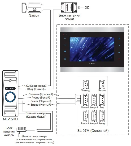 Отличительной особенностью ML-15HD является отдельное питание видеокамеры для подключения к DVR и видеодомофону с функцией регистратора.