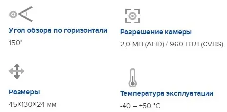 - Разрешение камеры: 2,0 МП (AHD) / 960 ТВЛ (CVBS)