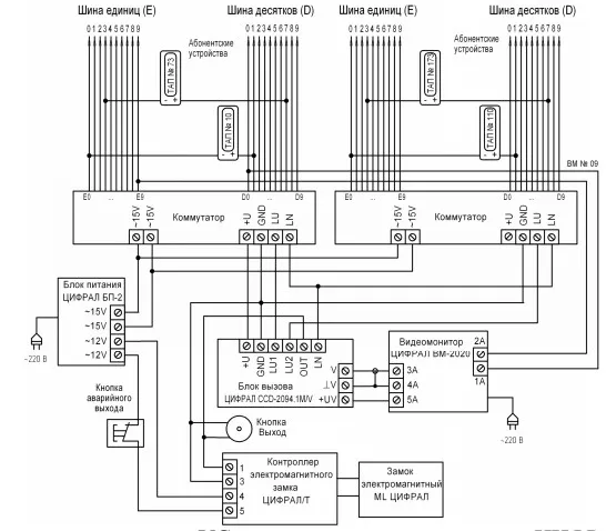 Схема подключения домофона с двумя коммутаторами