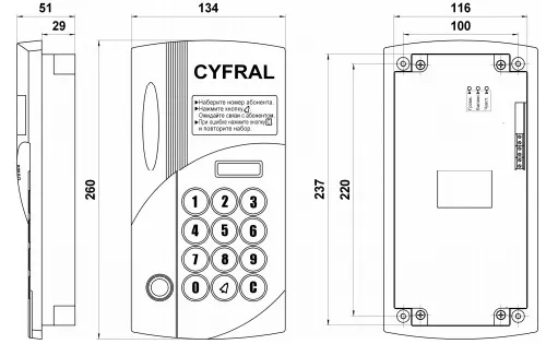 • Размеры блока вызова, мм, не более: 134х260х51