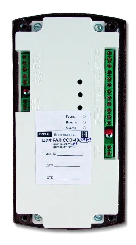 Цифрал CCD-40/TCVС имеет встроенную цветную видеокамеру и рассчитан на работу с видеомониторами 'Цифрал', также встроенный считыватель ключей и собственный процессор для их обработки.