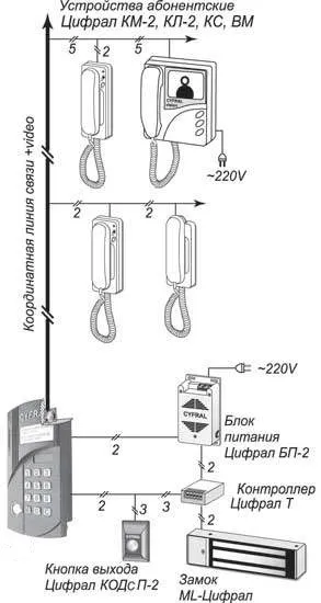 Схема соединения домофона Цифрал CCD-40/VС