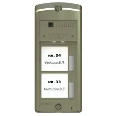 VIZIT БВД-306FCP-2 - блок вызова видеодомофона на 2 абонента. Встроенная телекамера цветного изображения с функцией 'День-ночь' (700 tvl, PAL, 0 Lux / ИК подсветка для телекамеры, объектив PINHOLE 90°). Встроенный контроллер до 960 ключей VIZIT-RF3 (RFID-13.56МГц). Обеспечивает дополнительную защиту от несанкционированного администрирования домофона. Возможность автоматической записи ключей - режим «Акцепт». Возможность обновления базы ключей, включения/выключения вызова квартир, изменения системных установок с помощью бесконтактного модуля памяти