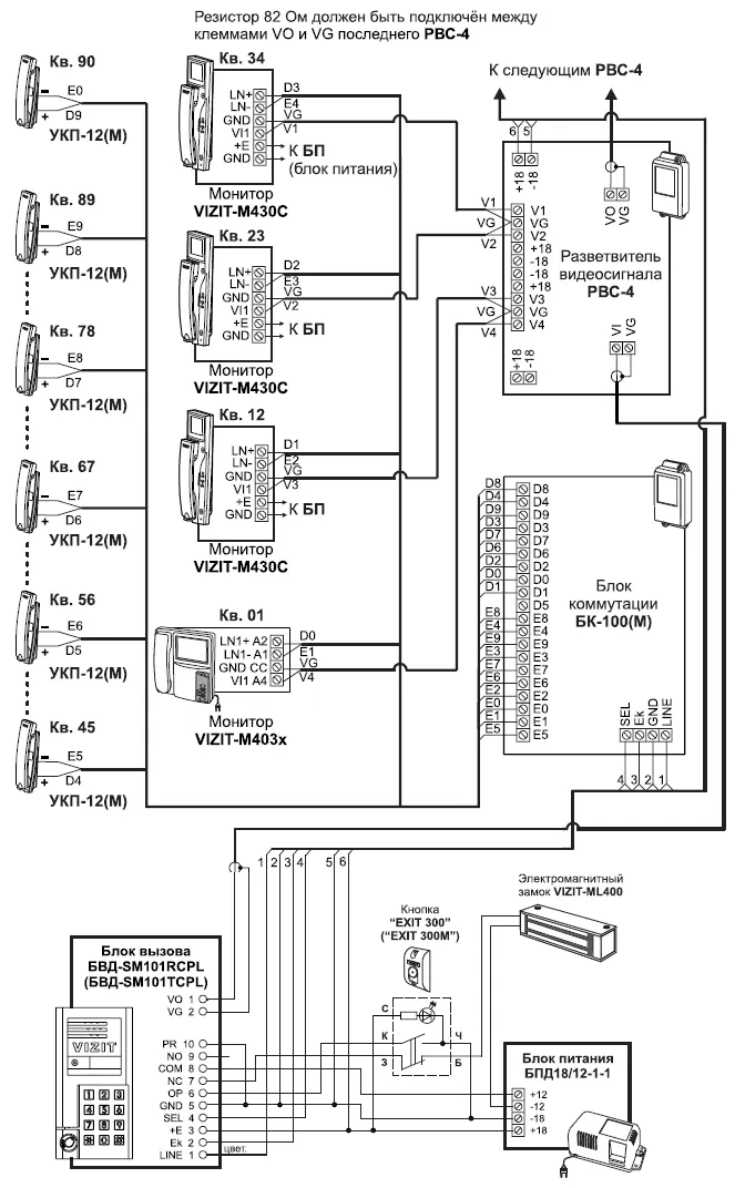 - блок вызова БВД-SM101TCPL используется совместно с блоком питания БПД18/12-1-1 как составная часть многоквартирного видеодомофона VIZIT,